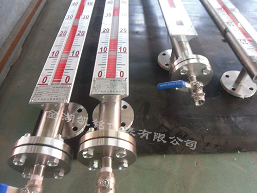 6.調試時應先打開上部引管閥門,然后緩慢開啟下部閥門,讓介質平穩進入主導管(運行中應避免介質急速沖擊浮子,引起浮子劇列波動,影響顯示準確性),觀察磁性紅白球翻轉是否正常,然后關閉下引管閥門,打開排污閥,讓主導管內液位下降,據此方法操作三次,確屬正常,即可投入運行(腐蝕性等特殊液體除外);