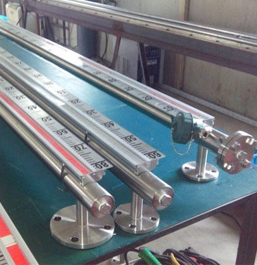 在液位計管體的另一側可按用戶需要加裝電遠傳變送器,將液位高度轉換成標準電流信號輸出,以供液位信號輸出,以供液位信號遠傳至二次儀表進行指示控制與檢測。