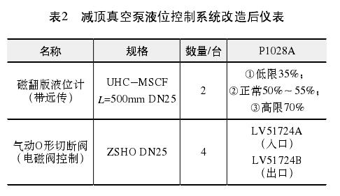 2005年,真空泵氣液分離器液位控制儀表開始投入運行,并按照廠方提供的控制方案進行液位控制。經過多年現場運行使用,液位控制系統暴露出控制偏差大、設備故障多、控制失靈現象頻生等問題,嚴重影響減壓裝置的長周期運行,尤其在減壓裝置加工負荷較大時,液位控制不穩定造成真空泵跳停或排氣溫度過高,進而導致減壓裝置工藝控制波動較大。