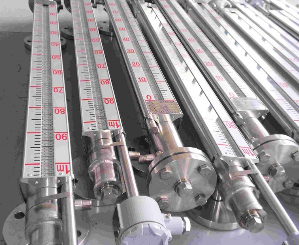 在管體的另一側可按用戶需要加裝電遠傳變送器,將液位高度轉換成標準電流信號輸出,以供液位信號輸出,以供液位信號遠傳至二次儀表進行指示控制與檢測。