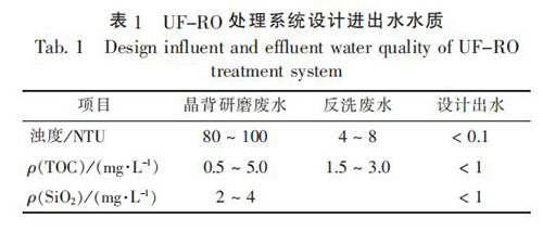 國內某二氧化碳液位計廠, 晶背研磨廢水產生量為 150 ~160 m3 / d, 反洗廢水產生量 為 500 ~ 700 m3 / d, 主要污染物為懸浮物, UF-RO 處理系統設計進水和出水主要水質指標見表 1。