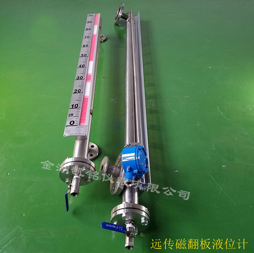 液位計根據浮力原理,浮子在測量管內隨液位的升降而上下移動,浮子內的永久磁鋼通過磁耦合作用,驅動紅、白色翻柱翻轉180’液位上升時,翻柱由白色轉為紅色,下降時,翻柱由紅色轉為白色,從而實現液位的指示。