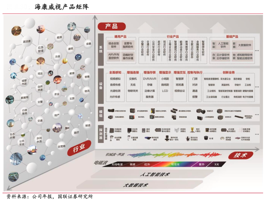 經(jīng)典案例:根據(jù)公司年報(bào)、國聯(lián)證券研究所等綜合資訊表明,??低晳{借多維感知、AI、大數(shù)據(jù)等技術(shù)優(yōu)勢,拓展了從探測器到系統(tǒng)解決方案的 30000+種硬件產(chǎn)品,覆蓋了 10 大行業(yè)、70多個(gè)子行業(yè)的 300 多個(gè)細(xì)分場景。同時(shí),公司以“基線”+“定制”的模式,不斷豐富產(chǎn)品矩陣,形成了技術(shù)創(chuàng)新驅(qū)動(dòng)的核心競爭力。