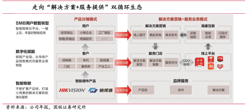 經(jīng)典案例:根據(jù)公司年報(bào)、國聯(lián)證券研究所等綜合資訊表明,??低暽罡鲁潦袌?,與全國合作伙伴共建“解決方案營銷+服務(wù)提供”的雙循環(huán)生態(tài),打造線上線下數(shù)字化門店,構(gòu)建覆蓋全國的服務(wù)網(wǎng)格,助力中小企業(yè)數(shù)字化轉(zhuǎn)型。截至 2022 年末,公司在中國大陸擁有 32 家省級(jí)業(yè)務(wù)中心、300 多個(gè)城市分公司,渠道網(wǎng)絡(luò)覆蓋國內(nèi)絕大多數(shù)地級(jí)以上城市,渠道優(yōu)勢突出。