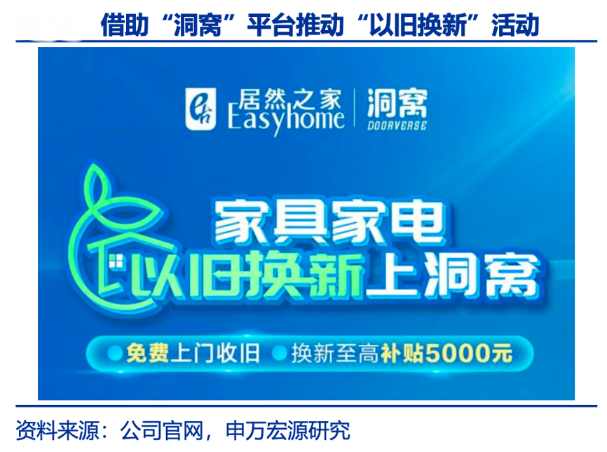 經(jīng)典案例:根據(jù)公司官網(wǎng)、申萬(wàn)宏源研究等綜合資訊表明,隨著洞窩 APP 的運(yùn)用,場(chǎng)內(nèi)的商戶(hù)擁有更多獲客的渠道,例如洞窩開(kāi)發(fā)的掃樓寶、營(yíng)銷(xiāo)寶、會(huì)員寶等獲客小工具,其借助洞窩平臺(tái),在 2022 年 5 月發(fā)布家具“以舊換新”活動(dòng),不僅大幅減少資源浪費(fèi),也可以幫助商戶(hù)挖掘和搶占零散的存量市場(chǎng),把握未來(lái)二手房翻新、局部升級(jí)以及老舊小區(qū)改造等市場(chǎng)發(fā)展新機(jī)遇。