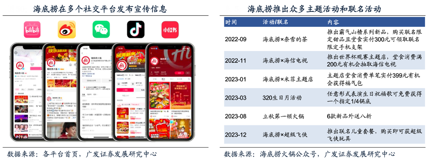 經(jīng)典案例:根據(jù)各平臺首頁、海底撈火鍋公眾號、廣發(fā)證券發(fā)展研究中心等綜合資訊表明,海底撈在320生日月推出的系列活動一方面強化消費者對于海底撈生日場景的認知同時據(jù)抖音生活服務(wù)商業(yè)觀察公眾號,2023年3月17日-19 日海底撈在抖音平臺開啟320生日嘉年華官方直播,連續(xù)3天位列抖音官方直播團購帶貨榜第一名,最終實現(xiàn)直播間曝光1.4億、GMV破億,成為抖音平臺首個正餐官方直播破億品牌。