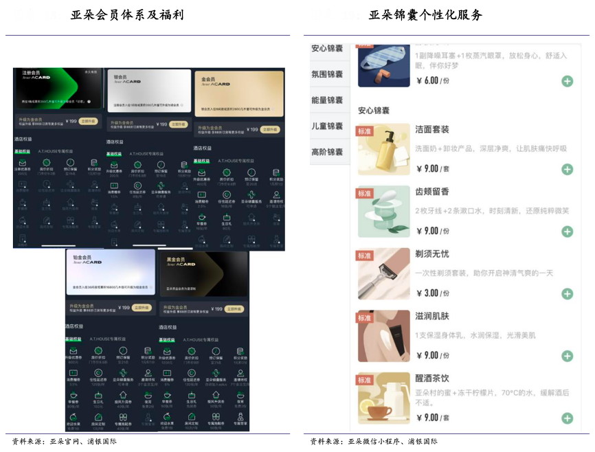 經(jīng)典案例:根據(jù)亞朵官網(wǎng)、亞朵微信小程序、浦銀國際等綜合資訊表明,亞朵的會(huì)員權(quán)益配置增強(qiáng)了會(huì)員的粘性,除免費(fèi)服務(wù)外,消費(fèi)者可以通過以積分兌換亞朵錦囊的方式,享受更多樣的服務(wù),也激勵(lì)消費(fèi)者積累更多積分。這些個(gè) 性化服務(wù)包括晚安牛奶、潔面套裝、醒酒茶飲等等。