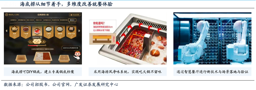 經(jīng)典案例::根據(jù)公司招股書、公司官網(wǎng)、廣發(fā)證券發(fā)展研究中心等綜合資訊表明,海底撈注重細節(jié),優(yōu)化技術(shù),持續(xù)改善就餐體驗。公司是中國首批引入平板電腦作為點餐工具的餐廳,平板電腦可以讓顧客更快、更準確及自動化下單,并通過下單系統(tǒng)積累顧客喜好等數(shù)據(jù),便于為顧客提供更個性化的服務。