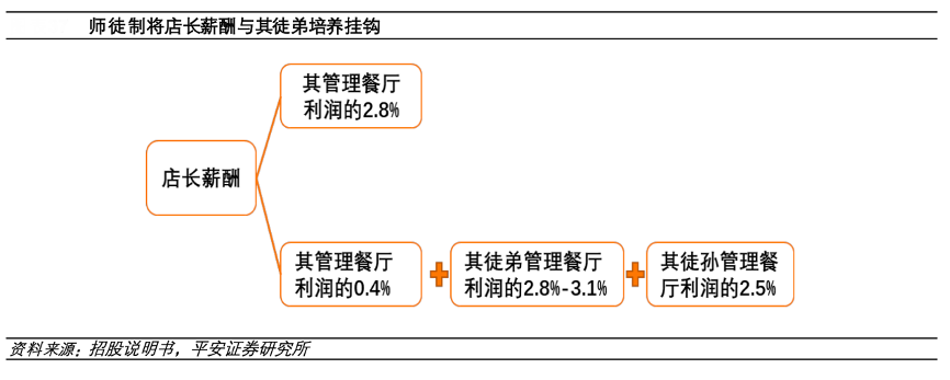 經(jīng)典案例:根據(jù)招股說明書、平安證券研究所等綜合資訊表明,海底撈公司采用“師徒制”進(jìn)行人才管理,海底撈的每一位新員工,在進(jìn)入公司后都會(huì)分配一位師傅,優(yōu)秀的徒弟由師父提拔,通過層層培訓(xùn)和考核最終晉升為店長(zhǎng),“師徒制”促進(jìn)海底撈自下而上裂變式培養(yǎng)人才及門店擴(kuò)張。