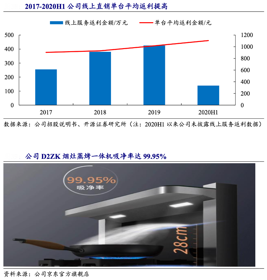經(jīng)典案例:根據(jù)公司招股說明書、公司京東官方旗艦店、開源證券研究所等綜合資訊表明,億田智能公司部分產(chǎn)品線上線下同款同傭,以線上為導流平臺獲取流量,初步與消費者互動,再引導消費者到門店體驗,提升對產(chǎn)品的感知 度,最后在網(wǎng)上下單成交,使得線上流量、線下互動有機結(jié)合。同款同傭策略打造線上爆品,進一步集聚流量,形成良性循環(huán)。2021 年,其線上主打產(chǎn)品 D2ZK 在“雙十一”期間實現(xiàn)單品破億,成為集成灶全網(wǎng)第一單品,有效提高品牌知名度。