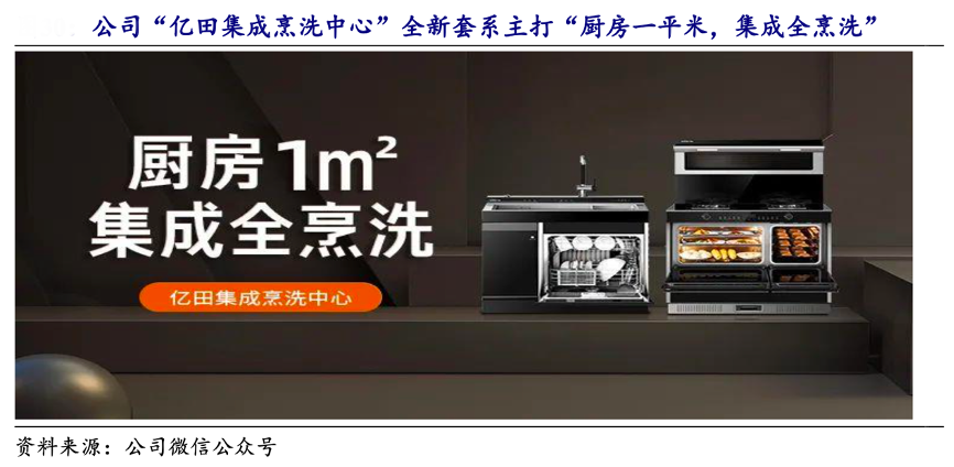 經(jīng)典案例:根據(jù)公司微信公眾號、開源證券研究所等綜合資訊表明,2022 年 3 月,億田智能公司發(fā)布“億田集成烹洗中心”全新套系,推出 1 臺“蒸烤獨立 集成灶”+1 臺“集成水槽洗碗機”的搭配,主打“廚房一平米,集成全烹洗”,集成 智能烹飪+鮮蔬餐具洗等全功能,打造兼具美學、功能、空間、烹飪、場景這五大集成突破,完成對中國廚房邊界和生態(tài)的擴容,覆蓋食材接入、烹飪產(chǎn)出、餐后處理等一系列環(huán)節(jié)的完整通路。