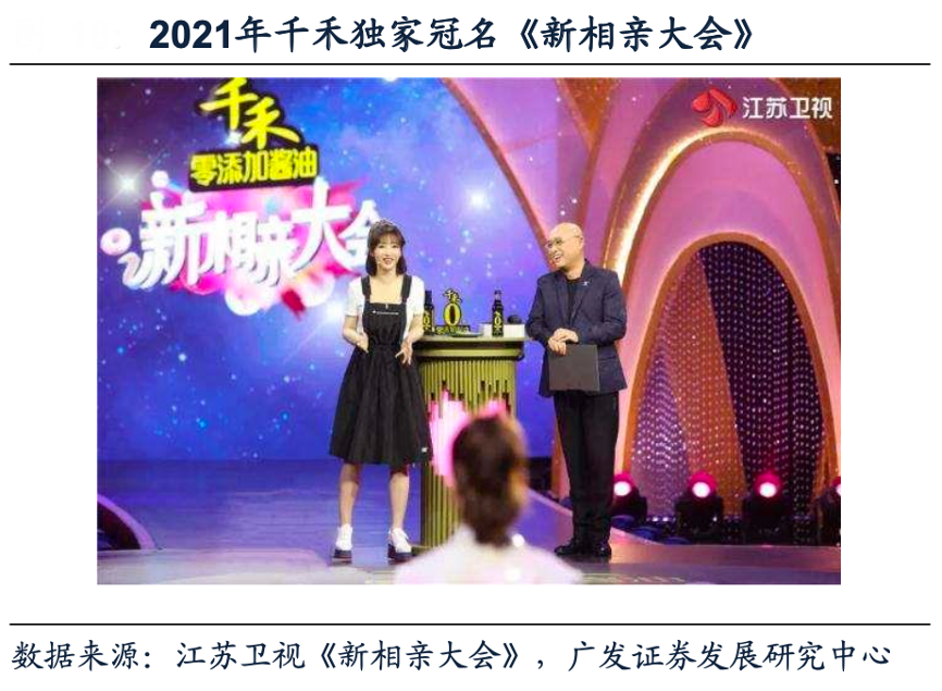 經(jīng)典案例:根據(jù)江蘇衛(wèi)視《新相親大會(huì)》、廣發(fā)證券發(fā)展研究中心等綜合資訊表明,2008年千禾開始圍繞零添加進(jìn)行營(yíng)銷。2018年公司提出“千禾零添加醬油,0添加劑,天然好味道”的品牌定位,2021年公司冠名《新相親大會(huì)》,“零添加,只有愛”的標(biāo)語(yǔ)頗具新意,繼續(xù)鞏固消費(fèi)者對(duì)“零添加=千禾”的品牌認(rèn)知。