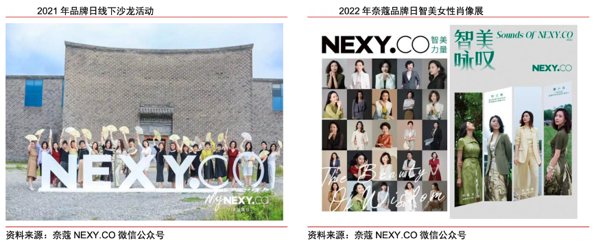 經(jīng)典案例:根據(jù)奈蔻NEXY.CO微信公眾號、中信證券研究部等綜合資訊表明,贏家時尚奈蔻自2020年起,將每年 7 月 18 日設(shè)立為“蔻LADY”專屬節(jié)日,開創(chuàng)國內(nèi)時裝品牌自創(chuàng)品牌日的先河。品牌日活動包括邀請業(yè)內(nèi)具有影響力的女性 KOL 解讀品牌智美力量,分享自然環(huán)保的品牌理念,以及邀請 VIP 用戶參與私享沙龍等活動,擴大品牌影響力。