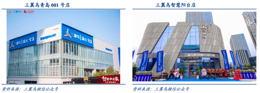 經(jīng)典案例:根據(jù)三翼鳥微信公眾號、華創(chuàng)證券等綜合資訊表明,三翼鳥001號店是首個物聯(lián)網(wǎng)全屋智慧家庭體驗中心,內(nèi)部空間較大,涵蓋陽臺、廚房、客廳、浴室、臥室等多個場景,能夠承接全屋定制場景需求。001號店作為三翼鳥場景 品牌的標志性門店,不僅能夠為用戶提供全屋家電和智慧家庭場景解決方案,同時 還包含設(shè)計、安裝、改造等一站式全流程服務(wù),有效帶動海爾生態(tài)場景銷售。