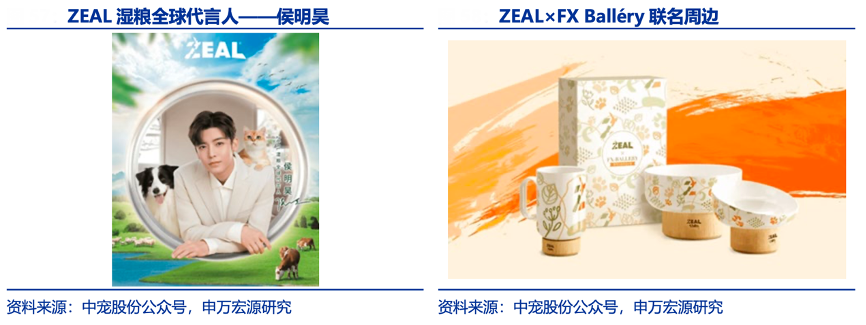 經典案例:根據中寵股份公眾號、申萬宏源研究等綜合資訊表明,2021 年,在新品 ZEAL 0 號罐推出之際,中寵公司官宣侯明昊為 ZEAL 濕糧全球代言人,開展線上線下全方位營銷活動,打造“自然本真”的品牌標簽;