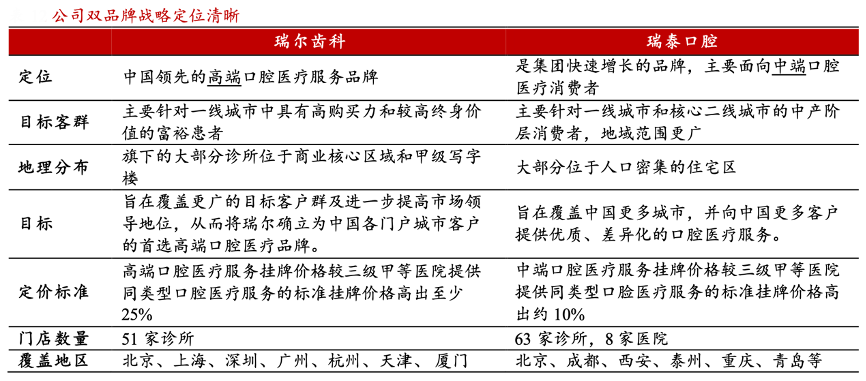 經(jīng)典案例:根據(jù)華西證券等綜合資訊表明,2012年,瑞爾公司推出子公司“瑞泰口腔”,雙品牌戰(zhàn)略著眼于差異化的價(jià)值主張,為來自于不同區(qū)域與經(jīng)濟(jì)背景的患者提供周到、明確、獨(dú)特的口腔醫(yī)療服務(wù)。在雙品牌戰(zhàn)略推動(dòng)下,公司迅速布局全國擴(kuò)張計(jì)劃,并快速擴(kuò)大了患者客群,獲取了兼具豐富性與多樣性的診療范例。