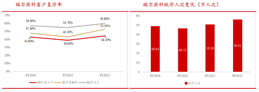 經(jīng)典案例:根據(jù)華西證券等綜合資訊表明,得益于高水平醫(yī)護(hù)資源,瑞爾齒科高質(zhì)量服務(wù)拉動(dòng)就診人次和客戶復(fù)診率齊增長。其擁有嚴(yán)格的醫(yī)護(hù)選拔條件,造就了高質(zhì)量服務(wù)醫(yī)護(hù)團(tuán)隊(duì),從源頭環(huán)節(jié)抓客戶滿意度。經(jīng)過多年精細(xì)化經(jīng)營,瑞爾齒科客戶忠誠度平均達(dá)到 45%左右,就診人次逐年突破,最高突破 56 萬人。