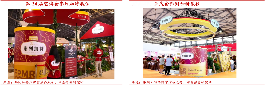 經(jīng)典案例:根據(jù)弗列加特品牌官方公眾號、中泰證券研究所等綜合資訊表明,乖寶寵物公司在“它博會”“亞寵會”等知名寵物展覽中為弗列加特品牌建立獨立展臺。為了強(qiáng)化產(chǎn)品的專業(yè)度,弗列加特在展會上安排研發(fā)人員詳細(xì)為用戶介紹產(chǎn)品營養(yǎng)成分、制作工藝以及相關(guān)技術(shù)專利,不斷強(qiáng)化自身高端貓糧的品牌定位。