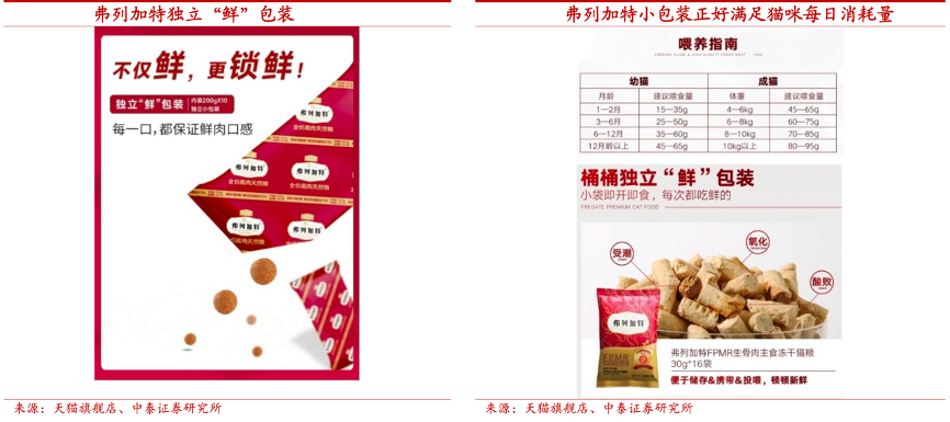 經(jīng)典案例:根據(jù)天貓旗艦店、中泰證券研究所等綜合資訊表明,乖寶寵物通過(guò)對(duì)貓咪和消費(fèi)者的細(xì)致觀察,發(fā)現(xiàn)首先貓的食量相對(duì)較小,其次,貓對(duì)食物相對(duì)挑剔,因此養(yǎng)貓人在買(mǎi)貓糧的時(shí)候,相對(duì)謹(jǐn)慎。因此給予兩大痛點(diǎn),公司采用小規(guī)格形式對(duì)弗列加特系列產(chǎn)品進(jìn)行包裝。這樣能保證貓咪每次吃到的食物可以充分鎖鮮,不回潮。其次,消費(fèi)者可以只買(mǎi)一小袋試吃裝進(jìn)行嘗試,提高了用戶首次購(gòu)買(mǎi)的破冰概率。