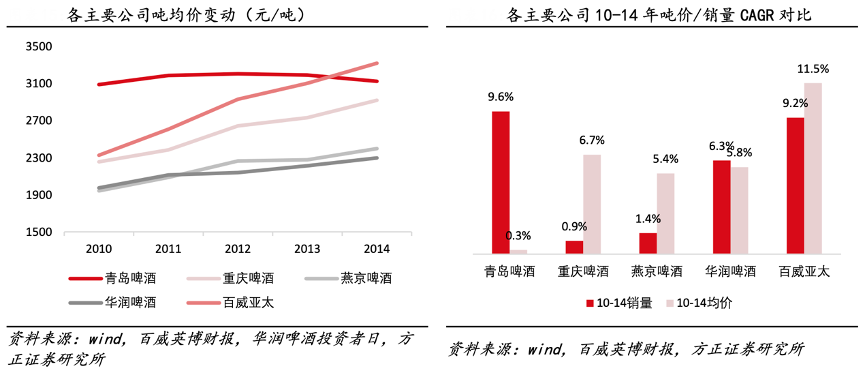 經(jīng)典案例:根據(jù)wind、百威英博財報、華潤啤酒投資者日、方正證券研究所等綜合資訊表明,百威亞太具備高端化戰(zhàn)略遠見,采取高舉高打的營銷策略:通過舉辦全渠道營銷活動、跨界聯(lián)名、贊助賽事等方式建設百威品牌的高端形象,不打價格戰(zhàn)。百威中國區(qū)噸收入 10-14 年 CAGR 達 11.5%,高于同行業(yè)主要公司。百威英博亞太區(qū)域 2015 年的銷售費用率(不含運費)達 25.18%,高于啤酒行業(yè)其他公司。