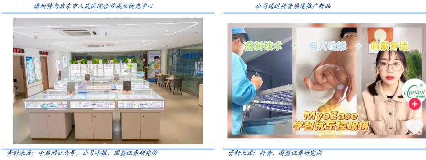 經(jīng)典案例:根據(jù)今啟網(wǎng)公眾號、公司年報、抖音、國盛證券研究所等綜合資訊表明,耐特光學公司通過與醫(yī)院合作成立視光中心,借助醫(yī)院專業(yè)化渠道背書,宣傳視力保護防控知識,推薦護目矯視眼鏡,直接接觸終端客戶。同時公司布局抖音等新興電商渠道,通過專業(yè)科普方式提升品牌力。