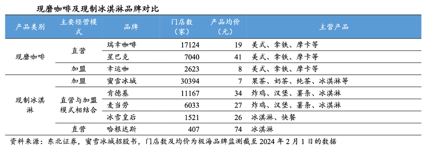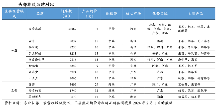 經(jīng)典案例:根據(jù)東北證券、蜜雪冰城招股書、極海品牌監(jiān)測數(shù)據(jù)等綜合資訊表明,蜜雪冰城是平價(jià)市場的絕對龍頭,根據(jù)窄門餐眼數(shù)據(jù),截至到 2024 年 2 月 1 日,蜜雪冰城門店數(shù)約 3 萬家,遠(yuǎn)超現(xiàn)制茶飲其他品牌,而產(chǎn)品均價(jià) 7 元,在現(xiàn)制茶飲行業(yè)價(jià)格優(yōu)勢顯著。