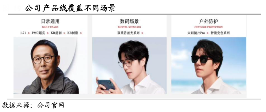 經(jīng)典案例:根據(jù)公司官網(wǎng)、國泰君安證券研究等綜合資訊表明,明月鏡片公司自主研發(fā)設(shè)計(jì)鏡片光學(xué)結(jié)構(gòu)、膜層結(jié)構(gòu),產(chǎn)品系列覆蓋滿足日常生活需求的通用型鏡片、針對(duì)不同人群及多元使用場(chǎng)景的功能性鏡片,如長時(shí)間使用電子屏幕人群可以選擇明月獨(dú)家雙重防藍(lán)光系列、喜歡透光性更強(qiáng)“水晶”般透亮不反光的可以選擇 PMC 超亮系列,追求輕薄鏡片體驗(yàn)人群可選擇折射率 1.71 系列以及適合戶外防護(hù)的近視太陽鏡片 Pro 系列,還有 KR 超韌、智能變色、漸進(jìn)多焦點(diǎn)等品類的鏡片。