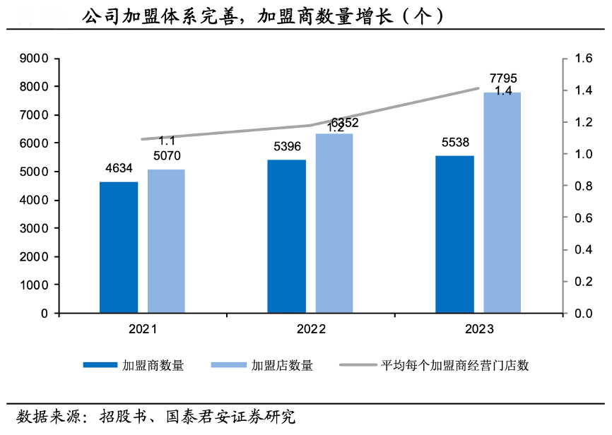 經(jīng)典案例:根據(jù)招股書、國泰君安證券研究等綜合資訊表明,茶百道通過嚴格的加盟商準入制度把控加盟商質(zhì)量(25-40 歲,1 家門店親自帶店 /2-3 家門店親自管理/3 家門店以上需組建管理團隊),成立茶百道職業(yè)技能培訓(xùn)學(xué)校為加盟商提供培訓(xùn)服務(wù),在全國范圍內(nèi)成立了 16 個區(qū)域運 營中心,在多方面予以加盟商支持。