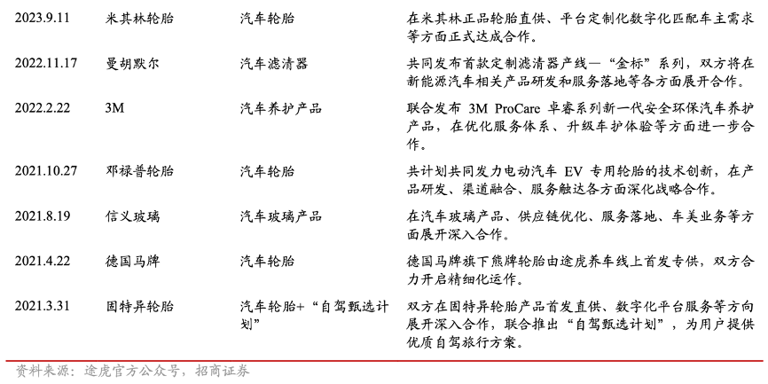 經(jīng)典案例:根據(jù)途虎官方公眾號(hào)、招商證券等綜合資訊表明,途虎基于先發(fā)及規(guī)模優(yōu)勢(shì)逐步成為國(guó)內(nèi)及國(guó)際暢銷(xiāo)品牌的首選和最大業(yè)務(wù)合作伙伴,與眾多供應(yīng)商(包括汽配零件和設(shè)備的品牌制造商和批發(fā)商)建立了穩(wěn)定的合作關(guān)系,尤其在輪胎、機(jī)油等細(xì)分市場(chǎng),途虎作為全國(guó)最大的零售商,成為諸多頭部品牌制造商難以替代的銷(xiāo)售渠道以及新品首發(fā)平臺(tái)。