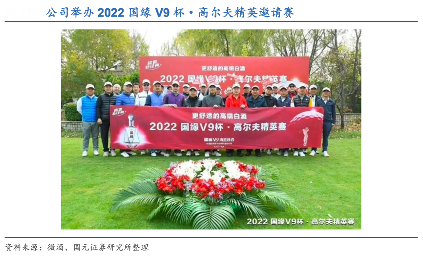 經(jīng)典案例:根據(jù)微酒、國(guó)元證券研究所等綜合資訊表明,國(guó)緣定位高端,堅(jiān)持高舉高打。例如, 2022 年 8 月,國(guó)緣 V9 與國(guó)家高爾夫球隊(duì)結(jié)成合作伙伴, 同年 11 月舉辦“2022 國(guó)緣 V9 杯·高爾夫精英邀請(qǐng)賽”,吸引近 800 位精英人士參 與,在高端消費(fèi)者圈層展開(kāi)精準(zhǔn)營(yíng)銷;更在 2023 年末的今世緣發(fā)展大會(huì)上,公司更是提出了“高端醬酒,獨(dú)愛(ài)國(guó)緣 V9”的鮮明 slogan,并簽約知名演員胡軍成為國(guó)緣 V9 代言人。