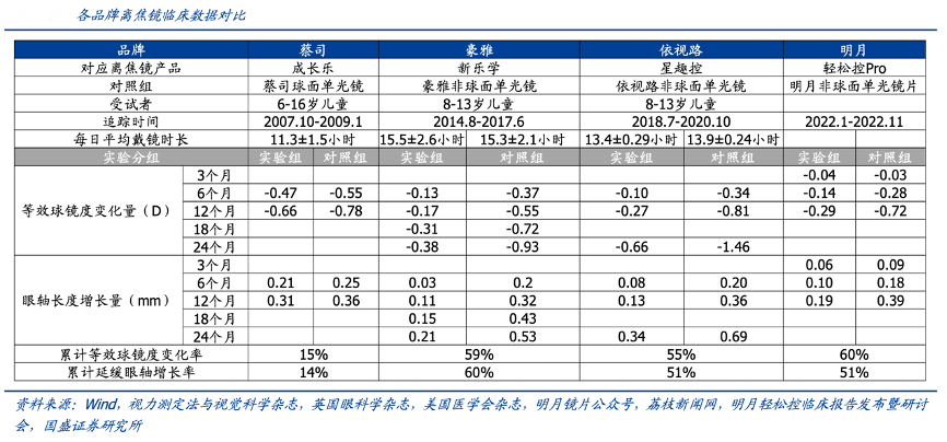 經(jīng)典案例:根據(jù)wind、視力測(cè)定法與視覺科學(xué)雜志、英國(guó)眼科學(xué)雜志、美國(guó)醫(yī)學(xué)會(huì)雜志、明月鏡片公眾號(hào)、荔枝新聞網(wǎng)、明月輕松控臨床報(bào)告發(fā)布暨研討會(huì)、國(guó)盛證券研究所等綜合資訊表明,渠道方面,明月鏡片公司80%線下終端門店鋪設(shè)焦鏡產(chǎn)品,此外專門組建團(tuán)隊(duì)開拓醫(yī)療渠道市場(chǎng),截至 2022 年底醫(yī)院類客戶 125 家,預(yù)計(jì)持續(xù)貢獻(xiàn)增量。專業(yè)性方面,公司在行業(yè)內(nèi)率先以 3 個(gè)月為觀察周期發(fā)布臨床研究結(jié)果,高頻率、精細(xì)化的數(shù)據(jù)跟蹤發(fā)布充分彰顯產(chǎn)品自信。