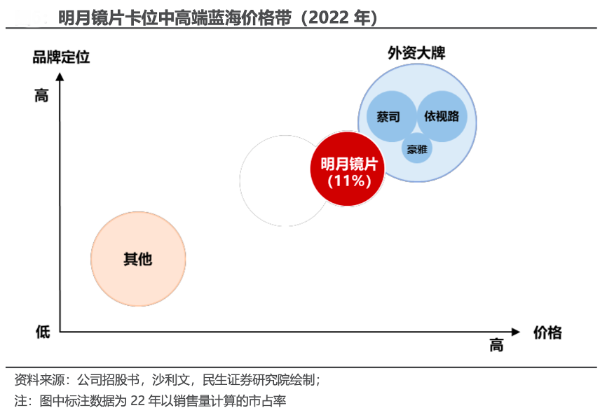 經(jīng)典案例:根據(jù)公司官網(wǎng)、民生證券研究院等綜合資訊表明,憑借著對行業(yè)的深刻洞察與敏銳前瞻性,明月鏡片在 2018 年起便主動退出部分低折射率低端產(chǎn)品業(yè)務(wù),轉(zhuǎn)型聚焦中高端鏡片市場,重點(diǎn)研發(fā)并推廣中高折射率、功能性鏡片等具備差異化競爭優(yōu)勢的鏡片產(chǎn)品。