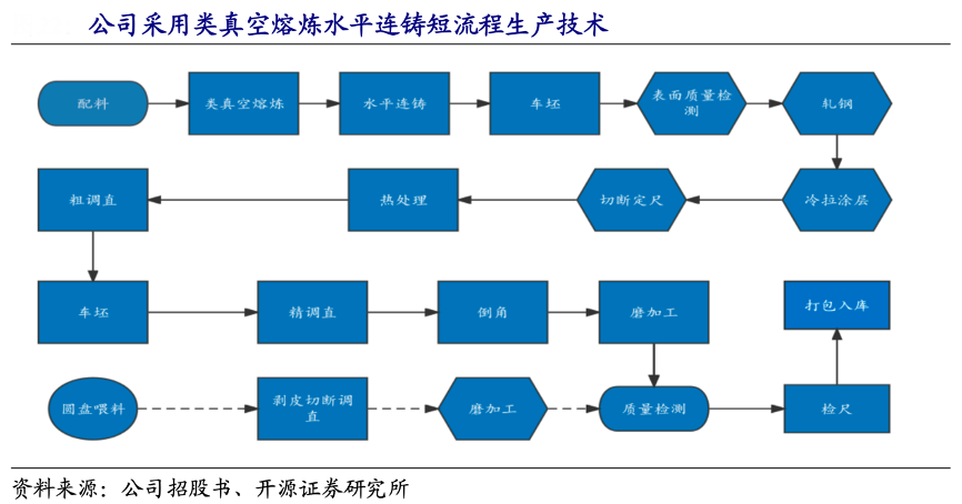 經典案例:根據公司招股書、開源證券研究所等綜合資訊表明,金則利的核心產品通過采用類真空熔煉水平連鑄短流程生產技術,替代了傳統 的真空熔煉方法,該生產工藝技術為國內首創(chuàng)。其解決了鋼液二次氧化及鑄坯組織不均、致密度低等問題,同時優(yōu)化產品成分形成了小斷面連鑄耐蝕軟磁合金棒材技術,打破了我國高端電磁閥用耐蝕軟磁合金大部分依賴進口的局面。