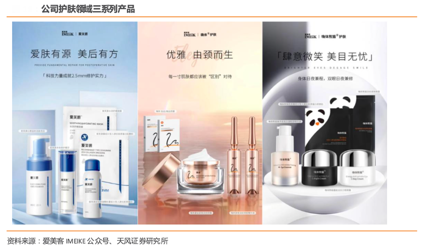 經(jīng)典案例:根據(jù)愛美客IMEIKE公眾號、天風證券研究所等綜合資訊表明,在醫(yī)美療程化治療越來越普遍及護膚分場景精細化的當下,愛美客公司捕捉到顧客期待在療程期間使用更為安全有效的醫(yī)美專研護膚品需求,參照醫(yī)療器械做法進行產(chǎn)品開發(fā),并在配方開發(fā)、功效評價、原料處理、微生物控制等方面嚴格 要求,圍繞面部、眼周、頸部等優(yōu)勢領(lǐng)域提供三套完整的居家護膚方案。