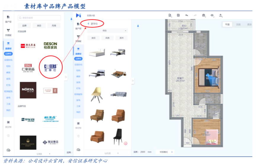 經(jīng)典案例:根據(jù)公司官網(wǎng)、安信證券研究中心等綜合資訊表明,紅星美凱龍“設(shè)計云”提供全景式線上家裝設(shè)計服務(wù),公司與“房天下”線上房地產(chǎn)家居專業(yè)網(wǎng)絡(luò)平臺達(dá)成合作,實現(xiàn)精 準(zhǔn)營銷,提升轉(zhuǎn)化率。并在 2019 年 6 月,其推出了“1+N”模式的生態(tài)鏈平臺,以城市大家居體驗館、小區(qū)樣板間拎包入住、社區(qū)服務(wù)店的全場景滲透式服務(wù)形成精裝修“拎包入 住”業(yè)務(wù)的體系化服務(wù),從開發(fā)商、設(shè)計、施工到服務(wù)體驗全流程滿足。