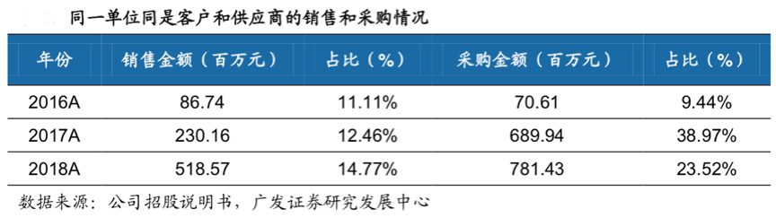 這類同一單位同是客戶和供應(yīng)商的銷售和采購金額逐年遞增。2018年同一單位 同是客戶和供應(yīng)商的銷售額和采購金額分別占銷售和采購的比重分別為14.77%和 23.52%,銷售金額達(dá)到了5.2億元,采購金額達(dá)到7.8億元;其中多多電商采取的供 應(yīng)鏈上下游衍生策略的銷售金額和采購金額比重分別是84.28%和80.30%。