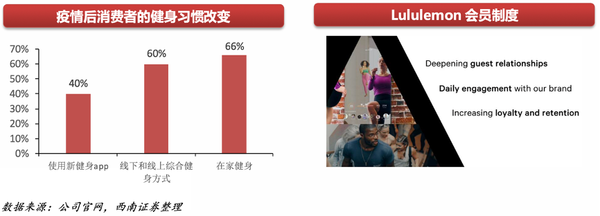 經(jīng)典案例:根據(jù)公司官網(wǎng)、西南證券等綜合資訊表明,根據(jù)大數(shù)據(jù)分析自2020年以來,有40%的消費者在使用新的健身app,60%的消費者喜歡線下線上兩者綜合的健身方式,66%的消費者表現(xiàn)更喜歡在家健身,其中使用線上健身app的消費者增長了300%。所以公司自收購了MIRROR后,就開始布局全渠道數(shù)字化的會員制度,創(chuàng)造方便便利的健身環(huán)境,及鎖定忠實顧客,更進一步加深與客戶之間的情感交流和粘度。