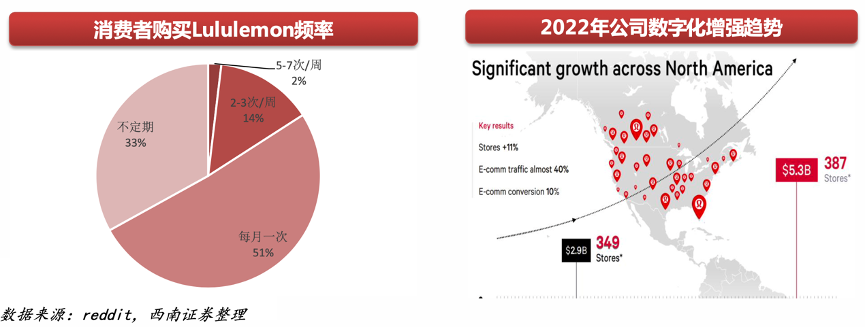 經(jīng)典案例:根據(jù)reddit、西南證券等綜合資訊表明,Lululemon公司通過分析這 些大數(shù)據(jù),可以更快和更精準的把傳播內(nèi)容點對點的鋪蓋到每個顧客,與客戶建立以情感為基礎的正向交流,增強客戶粘性,從而讓社群裂變,擴大自己的客戶人群,提高產(chǎn)品復購率。根據(jù)Reddit網(wǎng)站統(tǒng)計,51%lululemon消費者會每個月購買一次,33%消費者購買頻次不固定,14%消費者每周會購買兩三次; 2%的消費者每周會購買5-7次。