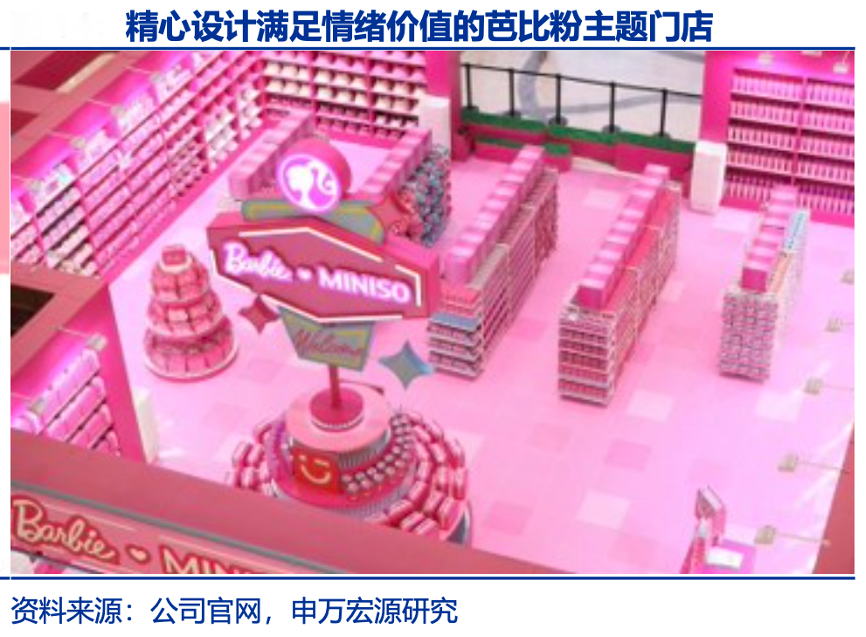 經(jīng)典案例:根據(jù)公司官網(wǎng)、申萬宏源研究等綜合資訊表明,名創(chuàng)優(yōu)品在芭比、Loopy 兩次聯(lián)名中,主題門店頗具亮點。如長沙芭比概念店和杭州 Loopy 旗艦 店等,利用鮮明 IP 主題設計(如芭比粉色調、Loopy 沉浸式場景)及創(chuàng)新技術(如裸眼 3D 天幕),成為城市網(wǎng)紅打卡點。