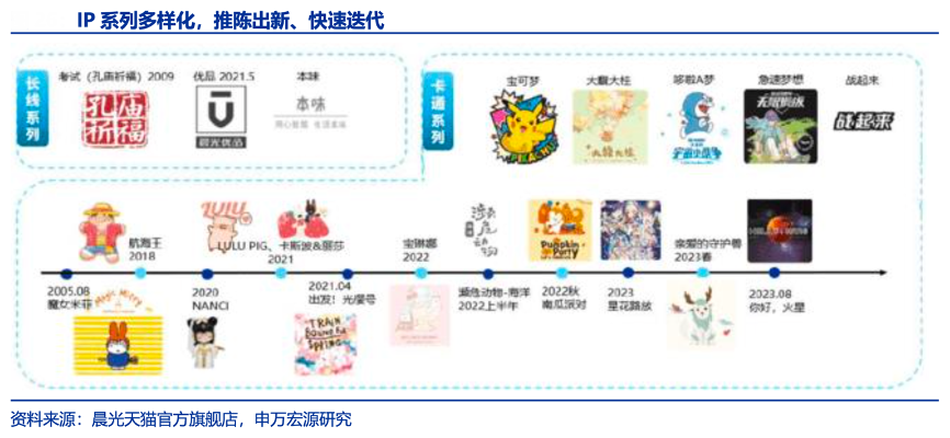 經(jīng)典案例:根據(jù)晨光天貓官方旗艦店、申萬(wàn)宏源研究等綜合資訊表明,晨光股份公司以學(xué)生文具品類(lèi)為主, 2023 年上新節(jié)奏由 2 次調(diào)整為 4 次,助力提升新品存活率,并通過(guò)對(duì)在銷(xiāo)品類(lèi)結(jié)構(gòu)精細(xì)梳理,提高必備品上柜率,將有利于終端動(dòng)銷(xiāo)能力提升,提高周轉(zhuǎn)效率和終端運(yùn)營(yíng)效率。