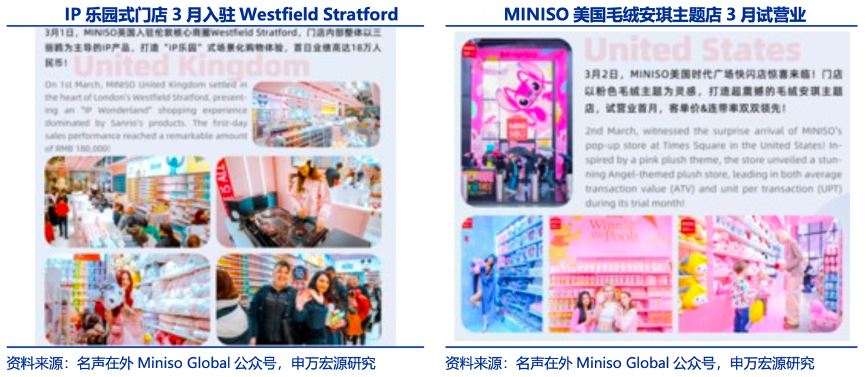 經(jīng)典案例:根據(jù)名聲在外Miniso Global公眾號(hào)、申萬(wàn)宏源研究等綜合資訊表明,名創(chuàng)精心策劃并成功復(fù)制 IP 主題店模式,引領(lǐng)當(dāng)?shù)爻绷飨M(fèi)。據(jù)贏商網(wǎng),在美國(guó)名創(chuàng)優(yōu)品打造芭比主題店,引領(lǐng)粉色消費(fèi)潮流。在印尼 Margo City Store 名創(chuàng)打造全球 首家以三麗鷗為主題的 IP 限定主題店。該店內(nèi)陳設(shè)廣闊的三麗鷗 IP 聯(lián)名專區(qū),營(yíng)造出一個(gè)充 滿夢(mèng)幻童趣的 IP 樂(lè)園。