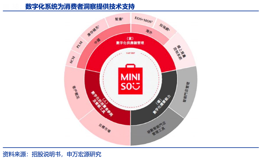 經(jīng)典案例:根據(jù)招股說(shuō)明書(shū)、申萬(wàn)宏源研究等綜合資訊表明,名創(chuàng)優(yōu)品依托 EOS 全球知識(shí)共享平臺(tái)、MIS 海外工作平臺(tái)、CRM 會(huì)員系統(tǒng)、社會(huì)輿情管控系統(tǒng)等,整合覆蓋超 7000 萬(wàn)注冊(cè)會(huì)員和超 3000 萬(wàn)私域用戶的大數(shù)據(jù)資源(數(shù)據(jù)來(lái)自騰訊新聞),結(jié)合外派員工的本地化調(diào)研及三方數(shù)據(jù)合作,提升消費(fèi)市場(chǎng)需 求洞察能力,確保 IP 本土化的科學(xué)性和實(shí)效性。