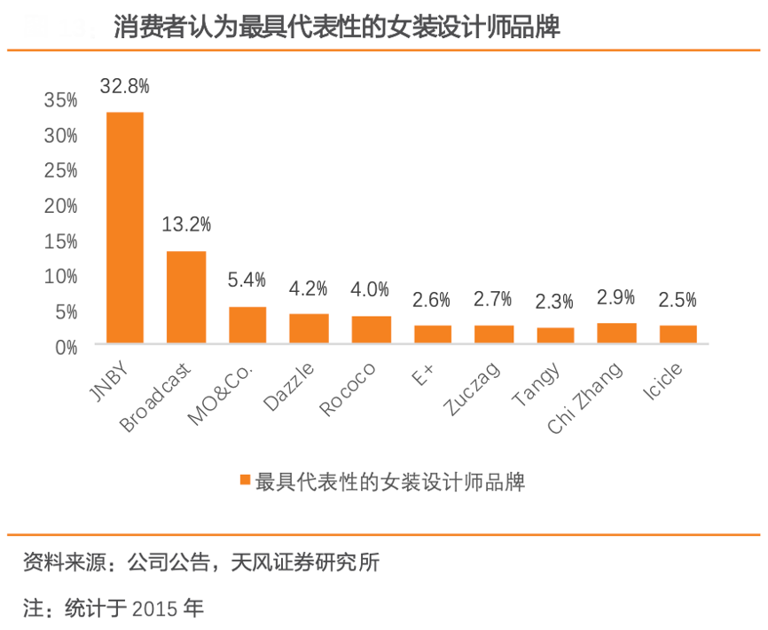 經(jīng)典案例:根據(jù)公司公告、天風(fēng)證券研究所等綜合資訊表明,中國設(shè)計(jì)師品牌時(shí)裝市場相對(duì)分散,2015 年以零售額 計(jì)算十大市場參與者占市場份額的 43.2%。江南布衣于 2015 年在設(shè)計(jì)師品牌時(shí)裝公司中取得最 高的零售額及 9.6%的市場份額,占中國總體服裝市場份額 0.2%,是 2015 年中國最大的設(shè) 計(jì)師品牌時(shí)裝公司。