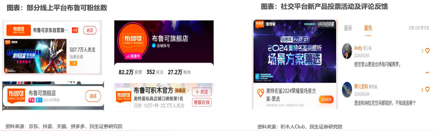 經(jīng)典案例:根據(jù)京東、抖音、天貓、拼多多、積木人Club、民生證券研究院等綜合資訊表明,可通過(guò)內(nèi)容驅(qū)動(dòng)的互聯(lián)網(wǎng)營(yíng)銷策略以及全渠道的銷售網(wǎng)絡(luò),布魯可實(shí)現(xiàn)了良好的營(yíng)銷和銷售效果。在京東、微信、天貓、抖音、拼多多、快手、微博、小紅書、嗶哩嗶哩等線上平臺(tái)共擁有超過(guò)1,100萬(wàn)粉絲,是位列中國(guó)玩具企業(yè)前二的品牌。