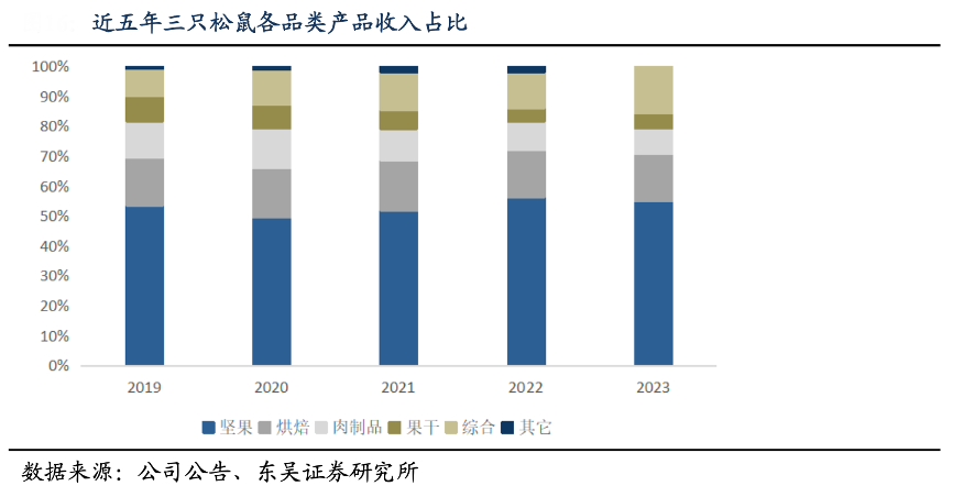 經(jīng)典案例:根據(jù)公司公告、東吳證券研究所等綜合資訊表明,三只松鼠公司堅持以堅果為核心,三只松鼠每日堅果、夏威 夷果、開心果等堅果產(chǎn)品長期穩(wěn)居天貓等眾多品類榜單前列。同時,其也在不斷進(jìn)行品類拓展,近年來新增甄養(yǎng)椰子汁、鮮蛋糕、手撕風(fēng)干烤脖、鱈魚腸、紅豆蛋黃酥 等系列新品,產(chǎn)品矩陣不斷豐富。