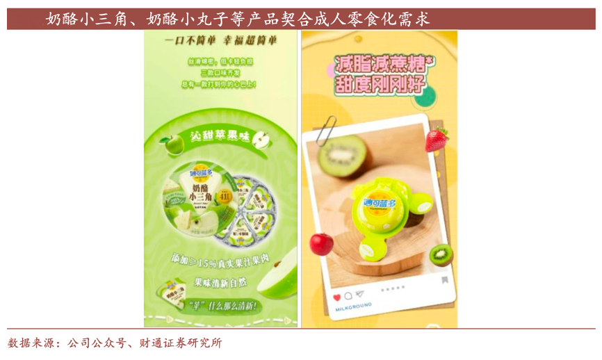 經(jīng)典案例:根據(jù)公司公眾號、財通證券研究所等綜合資訊表明,妙可藍(lán)多公司基于市場趨勢提出“奶酪+”戰(zhàn)略。如2025 年公司推出減糖減脂的奶酪小丸子與奶酪小三角等健康化零食,并開發(fā)便于攜帶、分享的小包裝產(chǎn)品,持續(xù)破圈成人消費(fèi)群體。