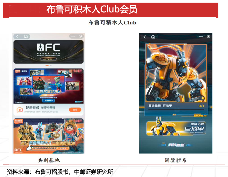 經(jīng)典案例:根據(jù)布魯可招股書、中郵證券研究所等綜合資訊表明,布魯可公司設(shè)立多渠道會(huì)員計(jì)劃,包括微信小程序布魯可積木人Club和各大電商平臺(tái)旗艦店會(huì)員。通過(guò)布魯可積木人Club,公司為消費(fèi)者提供多樣的互動(dòng)體驗(yàn),其發(fā)布圖片和文字,分享他們的收藏和二次創(chuàng)作作品;截至2024H1,公司在布魯可積木人Club 上擁有約200萬(wàn)注冊(cè)會(huì)員。