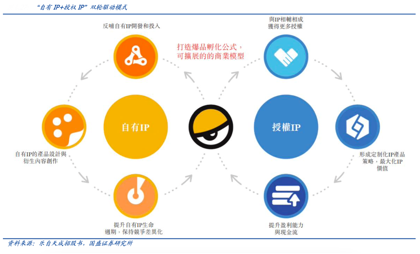 經(jīng)典案例:根據(jù)樂自天成招股書、國盛證券研究所等綜合資訊表明,樂自天成公司以“IP中樞”戰(zhàn)略為核心,打造了覆蓋全產(chǎn)業(yè)鏈的一體化運(yùn)營體系。