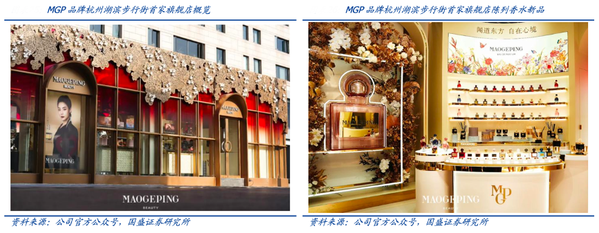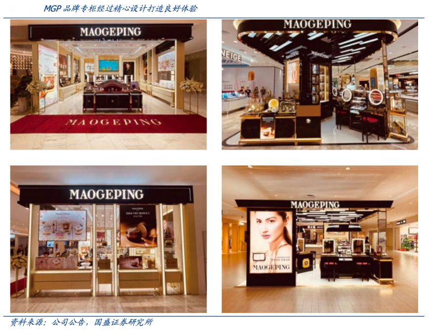 經(jīng)典案例:根據(jù)公司公告、國(guó)盛證券研究所等綜合資訊表明,MGP品牌的專(zhuān)柜基本位于中高端商場(chǎng),專(zhuān)柜的裝潢經(jīng)過(guò)精心設(shè)計(jì),配備的專(zhuān)業(yè)員工可為消費(fèi)者提供個(gè)性化咨詢及專(zhuān)業(yè)試妝服務(wù),打造沉浸式及個(gè)性化的購(gòu)物體驗(yàn)。